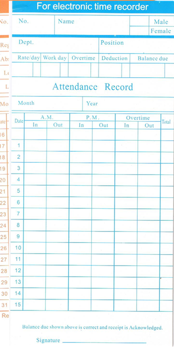 Cet appareil de construction asiatique, facile à installer est destiné à imprimer l'heure et la date sur un carton de pointage mensuel. Par son fonctionnement automatique, il peut aussi